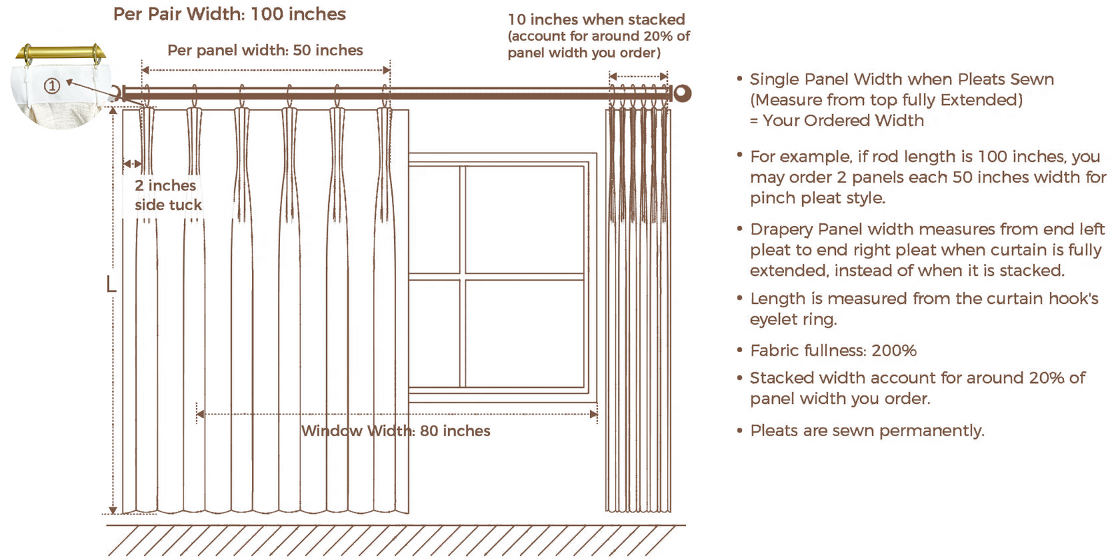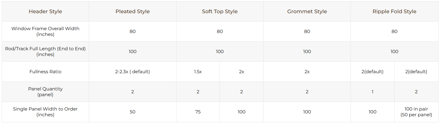 - 2x Fullness for pinch pleat, tailor pleat, inverted pleat, and goblet style.